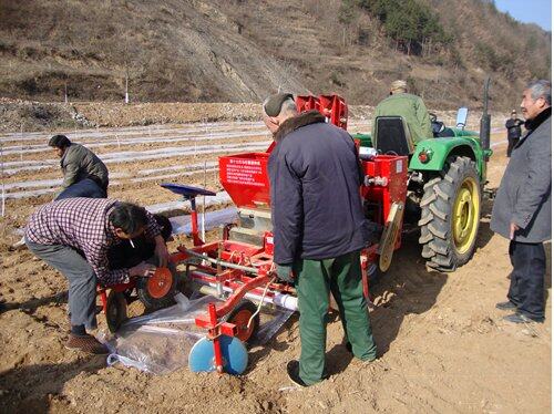 马铃薯机械化是丹凤县农机中心今年引进的一项农机作业新技术,该技术包括五项作业环节:一是耕整地作业。深翻、旋耕、整地;二是机械种植作业。这一技术即一次性完成开沟、施肥、播种、起垄、覆膜等多项工序,播种、起垄均匀,省时省力,节约肥料种子,覆膜质量高等优点;三是破膜作业。在马铃薯快出苗时,采用上土机进行机械破膜,有利于马铃薯芽快速出膜,避免烧苗的情况;四是杀秧作业。马铃薯成熟收获前,利用刹秧机对马铃薯秧进行杀秧还田,为收获做准备,减小秧蔓对收获机械的缠绕,可提高收获质量;五是收获作业。采用马铃薯收获机械收获,可缩减马铃薯收获时间,降低劳动强度。